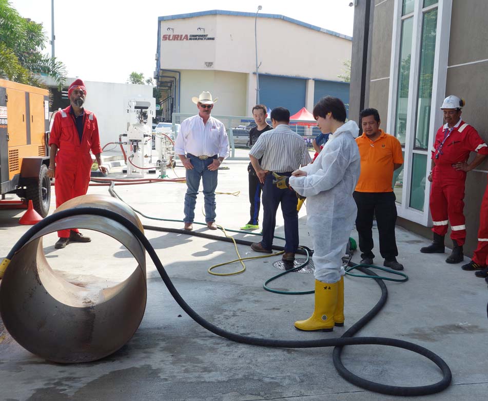 期間,系統(tǒng)學(xué)習(xí)了石榴石的噴砂技術(shù)要領(lǐng)、了解了各種新型的噴砂設(shè)備、部件及使用方法,進行了RZG石榴石噴砂磨料同澳大利亞石榴石、印度石榴石的實際噴砂對比,進行了RZG石榴石噴砂磨料同銅渣(也叫銅礦砂)的實際噴砂對比。